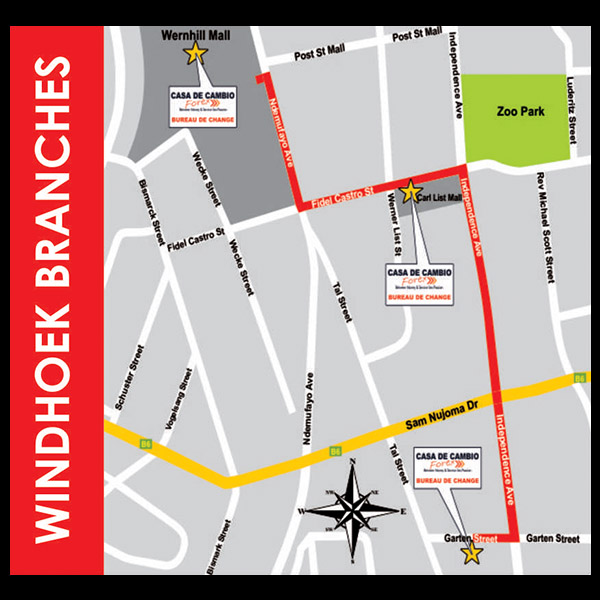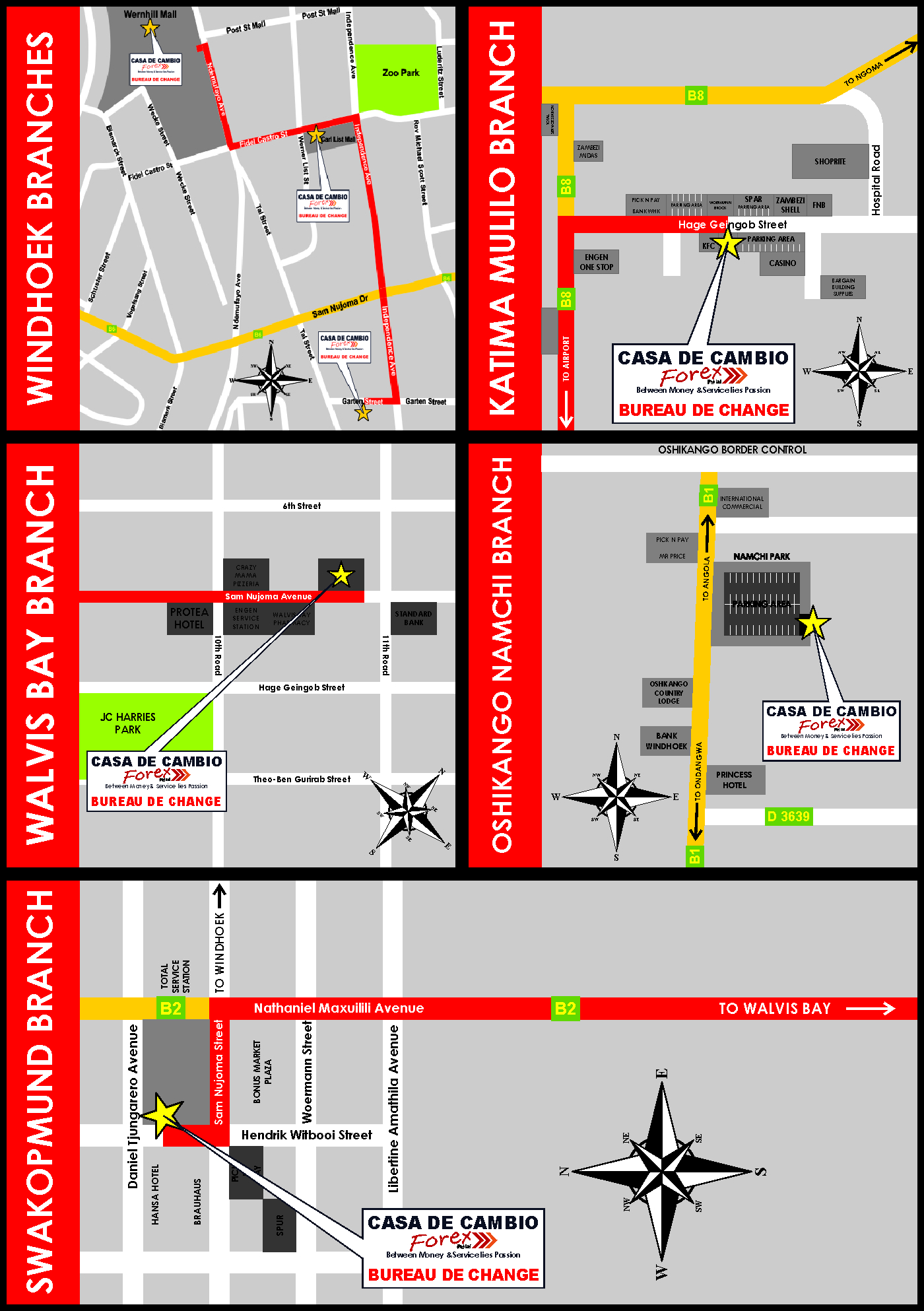 We are a foreign exchange bureau de change with 100% Namibian ownership. We are in operation since May 2011 and currently have 7 outlets in towns Windhoek, Oshikango, Walvis Bay, Katima Mulilo and Swakopmund for our customer’s convenience. We are converting Namibia Dollar to foreign currency cash with personalized services where we can deliver your cash upon an order you made, or assisting your clients at your business , thus avoiding Bank delays and the rush of the city. We also offer Money transfer services via MoneyGram and Wester Union where you can transfer your funds to family and friends worldwide. We have a direct and personal approach to client service, direct contact with our different outlets to negotiate exchange rates via your office to ours. We also offer special rates on bulk amounts. Payments whether from you to us or vice versa can be done via electronic transfer, cash or we also offer card facilities. We are very passionate about our business and we assure you that we will be an excellent service provider.